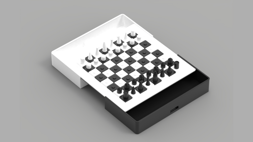 3D Model STL File of the Minimalistic Chess Pieces Set + Chess Board + Drawers for Pieces Storage